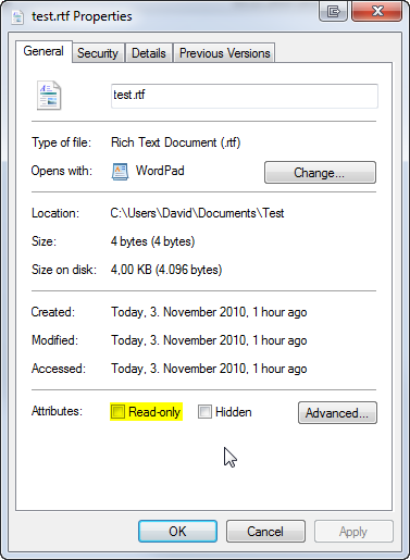In the window that appears check whether Read only is checked, if yes choose uncheck then click on OK the file will no longer be read only.